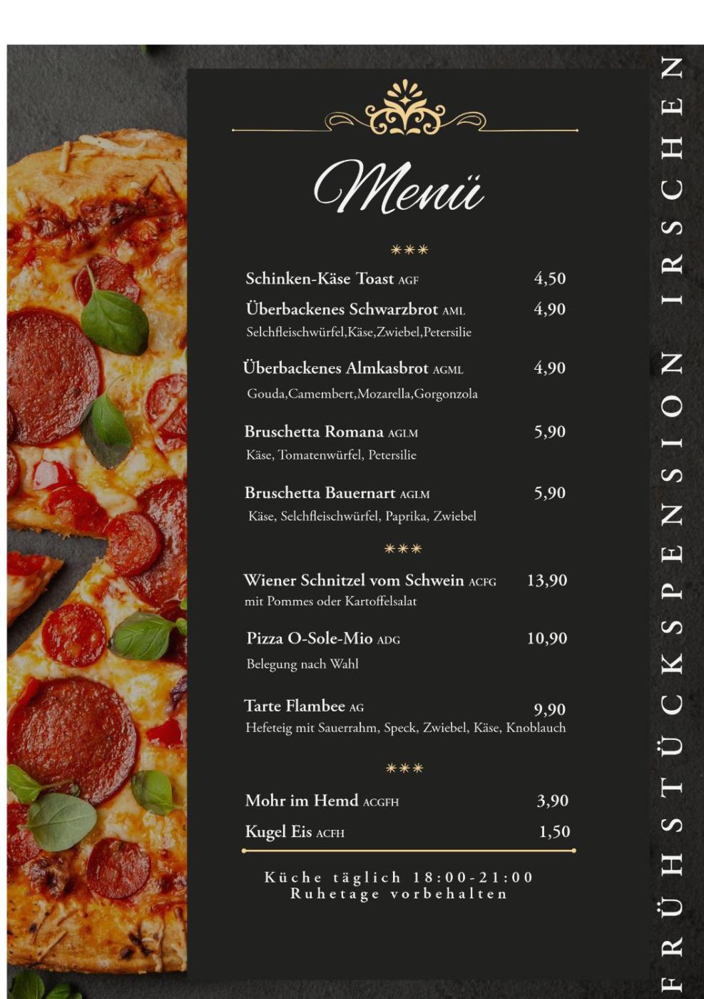 Speisen für spezielle Ernährungsbedürfnisse (auf Anfrage)
