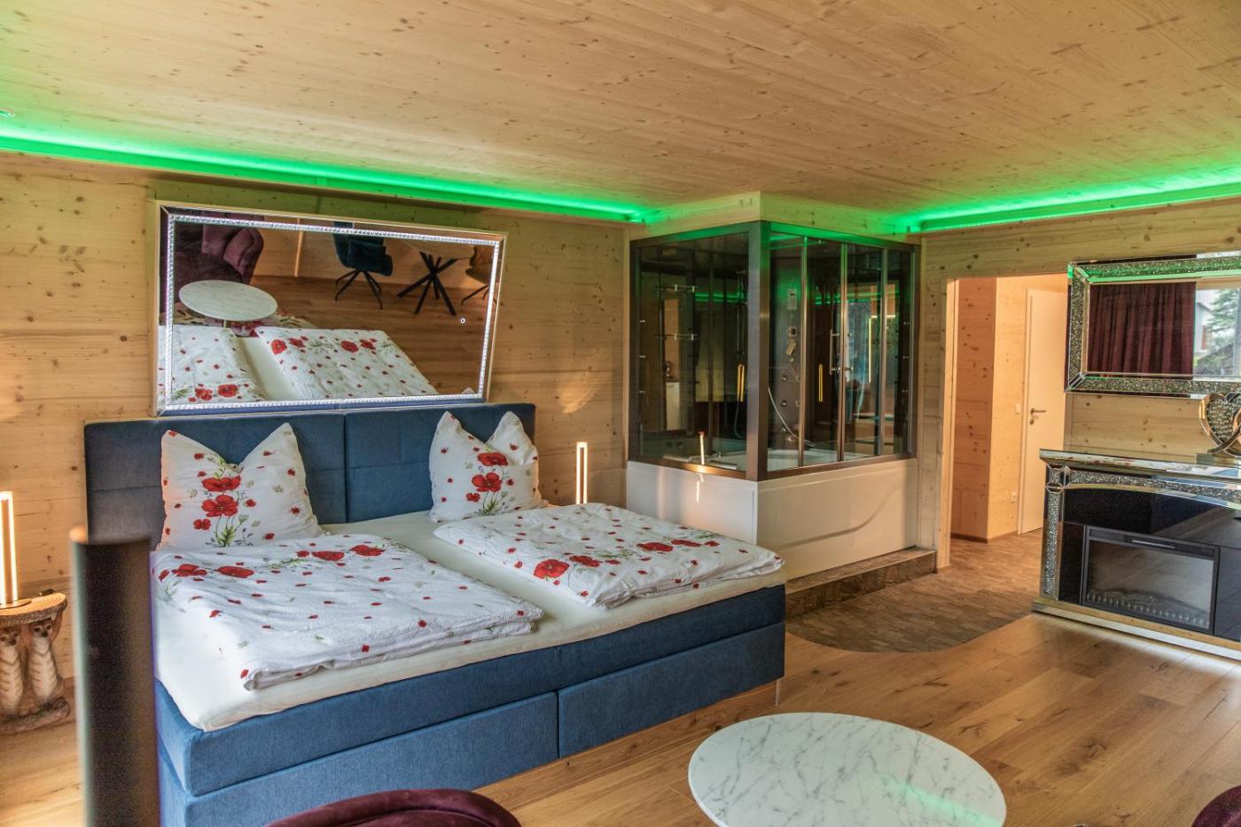 One-Bedroom Apartment. The hot tub and fireplace are the standout features of this apartment. Boasting a private entrance, this apartment comes with 1 living room, 1 separate bedroom and 1 bathroom with a bath and a shower. In the fully equipped kitchenette, guests will find a stovetop, a refrigerator, a dishwasher and kitchenware. Featuring a terrace with garden views, this apartment also features soundproof walls and a flat-screen TV with streaming services. The unit has 1 bed.