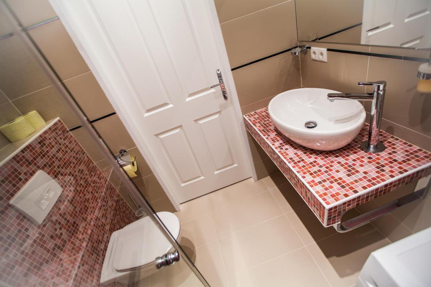 Two-Bedroom Apartment. This apartment is comprised of a kitchen, a seating area, 2 separate bedrooms and 1 bathroom with a walk-in shower and a hairdryer. Guests can make meals in the kitchen that is fitted with a stovetop, a refrigerator, a dishwasher and kitchenware. The apartment offers a washing machine, soundproof walls, a tea and coffee maker, a dining area, as well as a flat-screen TV. The unit offers 2 beds. ;